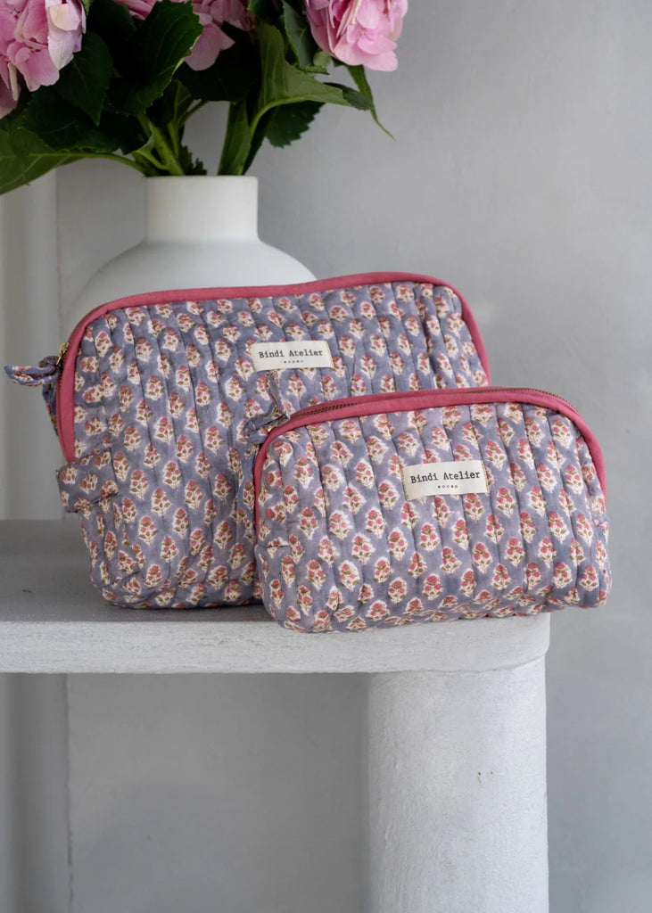 On ne vous présente plus les trousses Bindi Atelier : des motifs tous plus jolis les uns que les autres imprimés au blockprint en Inde de manière responsable, 2 tailles bien conçues pour y glisser tout son nécessaire de toilette, les produits de bébé ou son make up, un intérieur plastifié pour nettoyer en un coup d'éponge les petits accidents de flacon.