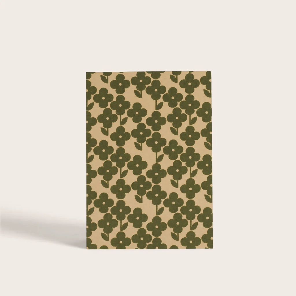Notez, dessinez, gribouillez sur les 75 pages vierges et détachables de notre calepin, fabriquées à partir d'épluchures d'agrumes. Avec ses petites fleurs rétro-scandinaves en accumulation, tout en rondeur et en douceur, notre motif Penelope, colorié dans un vert mousse d’antan, est tendrement kitsch et surtout irrésistible !