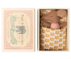 Un classique Maileg : cette souris mi-endormie/mi-éveillée est prête pour des heures de jeux et dormira au chaud dans sa boîte assortie. Les vêtements et le linge sont fabriqués dans des tissus doux aux imprimés uniques.