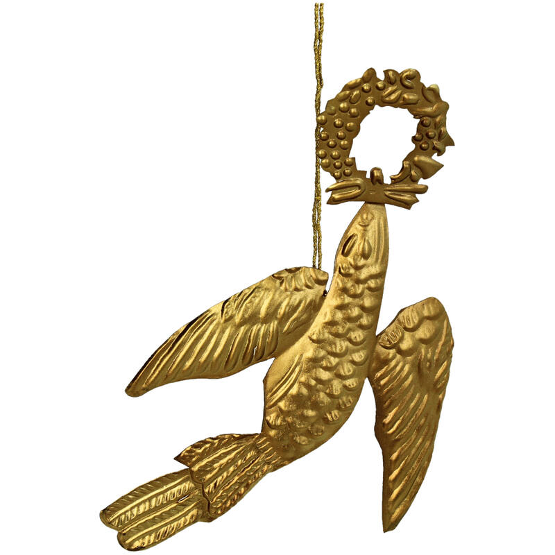 Pendentif de Noël oiseau suspendu en métal doré (21cm). Charmant et élégant.