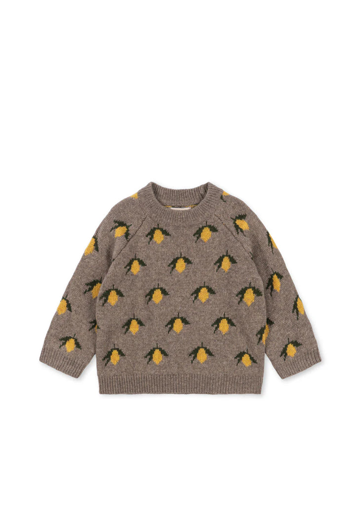 Pull en laine mérinos épaisse à la texture douce classique, avec de larges ourlets côtelés et des manches raglan.
