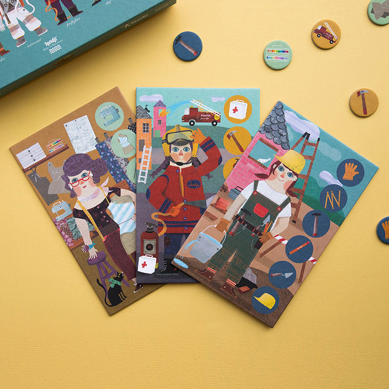 Un jeu de loto des métiers pour jouer avec toute la famille. Comprend 36 jetons et 6 planches en carton recyclé.